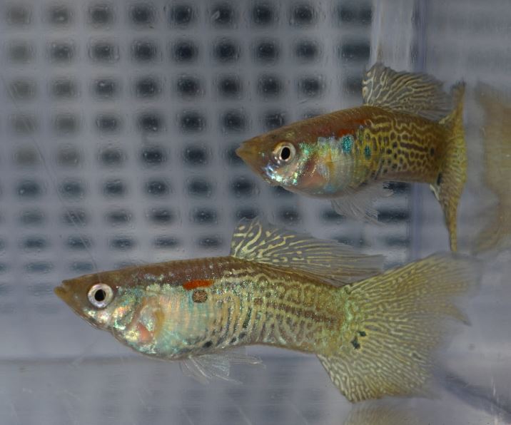 Takodje, radi ustede akvarijuma/prostora mozete mlade ne oplodjene zenke od nekoliko vrsta da drzite zajedno u jednome akvarijumu sve dok su zenke ‘vidno podijeljene po karakterisitikama/bojama’. Npr. Polu Crne Crne, Polu Crne Zelene, Polu Crne Leopard, Saroliku Zmijsku Kozu, Ljubicaste mozete bez problema da drzite zajedno. Plave, Zelene i Ljubicaste, ako uzgajate ciste linije, ne drze se zajedno. Jedan od primjera zasto, pogledajte clanak i video ‘promjena boje prouzrokovana stresom‘.